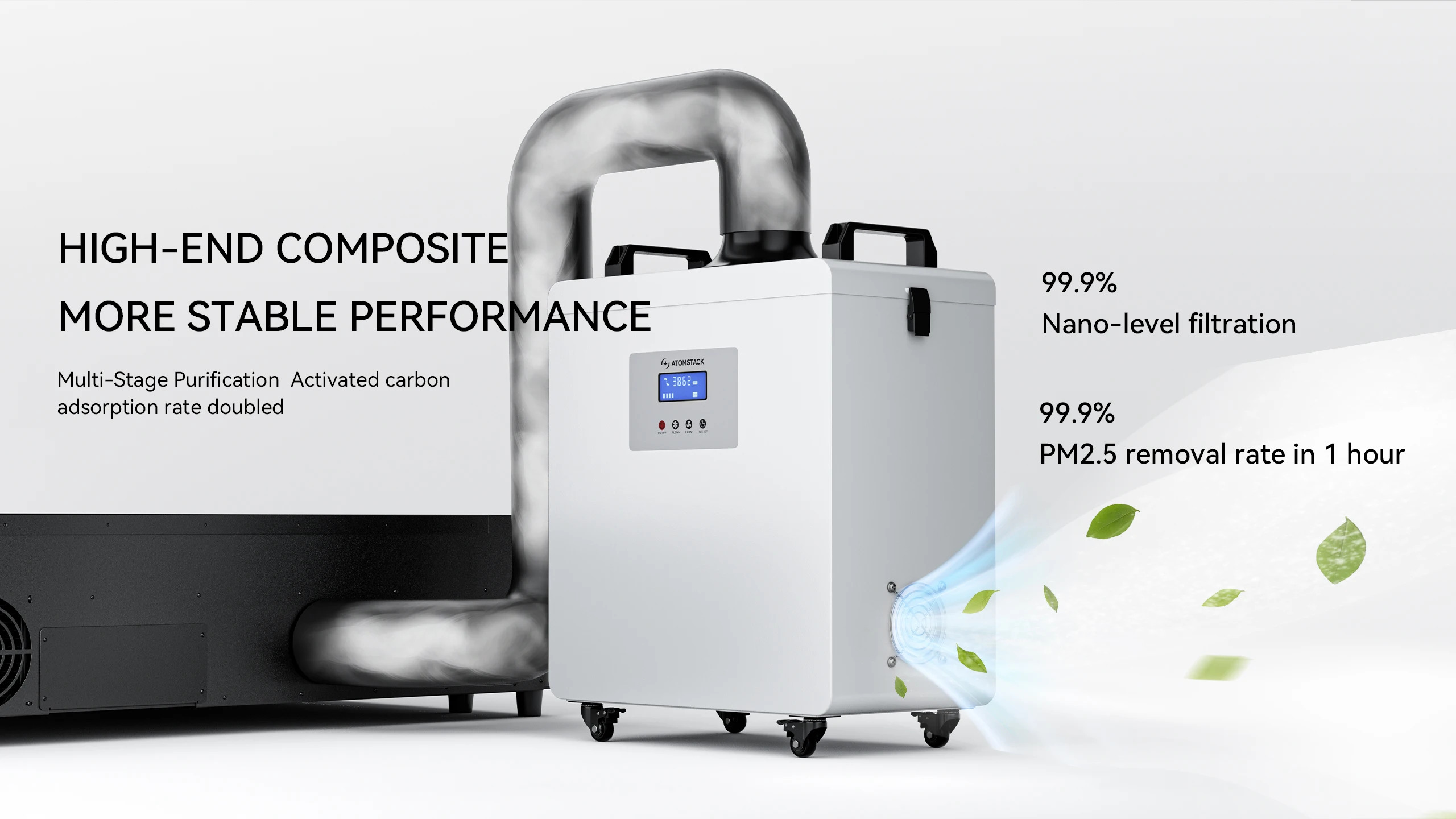 Osigurajte apsolutnu bezbednost uz AtomStack D4. Ovaj ekstraktor dima nudi efikasnost filtracije od 99,97 %. Za razliku od jeftinih rešenja, model D4 opremljen je snažnim motorom bez četkica (5200 o/min), koji garantuje industrijski protok vazduha do 22,5 m/s, uz izuzetno tih rad.
