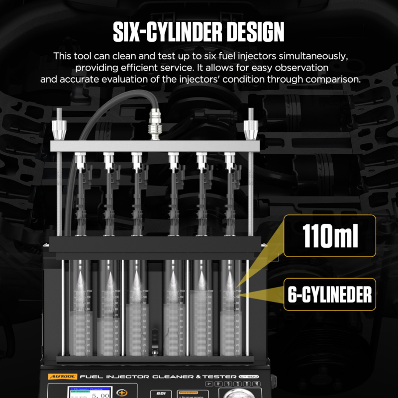 DINAMIKA TESTOVA I GDIAUTOOL CT500 predstavlja prekretnicu u dijagnostici direktnog ubrizgavanja Za razliku od standardnih uređaja, CT500 generiše kontrolni signal prilagođen specifičnostima brizgaljki visokog pritiska, što omogućava njihovo bezbedno otvaranje i precizan test performansi Ključni aspekti dijagnostike:
