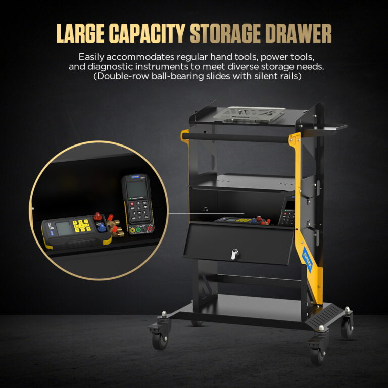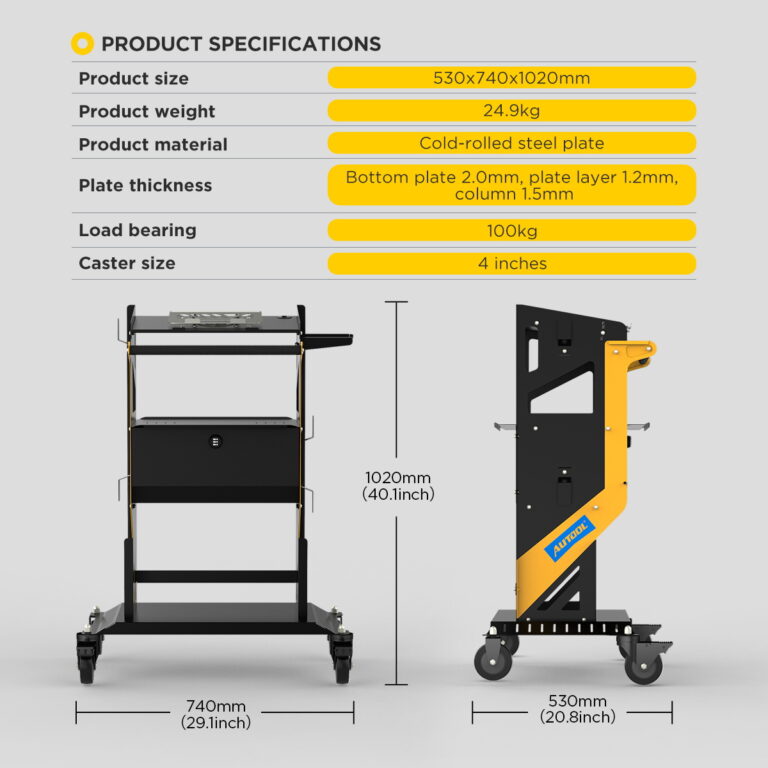 GLATKA MOBILNOST I STABILNOSTRad u radionici zahteva česta pomeranja opreme. AUTOOL T23 je dizajniran za lako i precizno manevrisanje, čak i pod punim opterećenjem. Tihi Heavy Duty točkovi: Okretni točkovi od 4 inča na ležajevima kreću se bešumno, čuvajući pod radionice. Sigurnosno blokiranje: Dva točka su opremljena snažnim kočnicama koje fiksiraju kolica u željenom položaju. Ergonomska ručka: Profilisana ručka sa neklizajućim premazom olakšava guranje i vučenje kolica. |