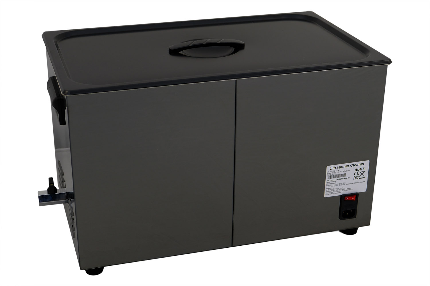 Ultrazvučni čistač GX100A je opremljen rezervoarom od visokokvalitetnog nerđajućeg čelika SUS304 zapremine 30 litara, ultrazvučnom snagom od 600 W i snagom grejanja od 500 W.