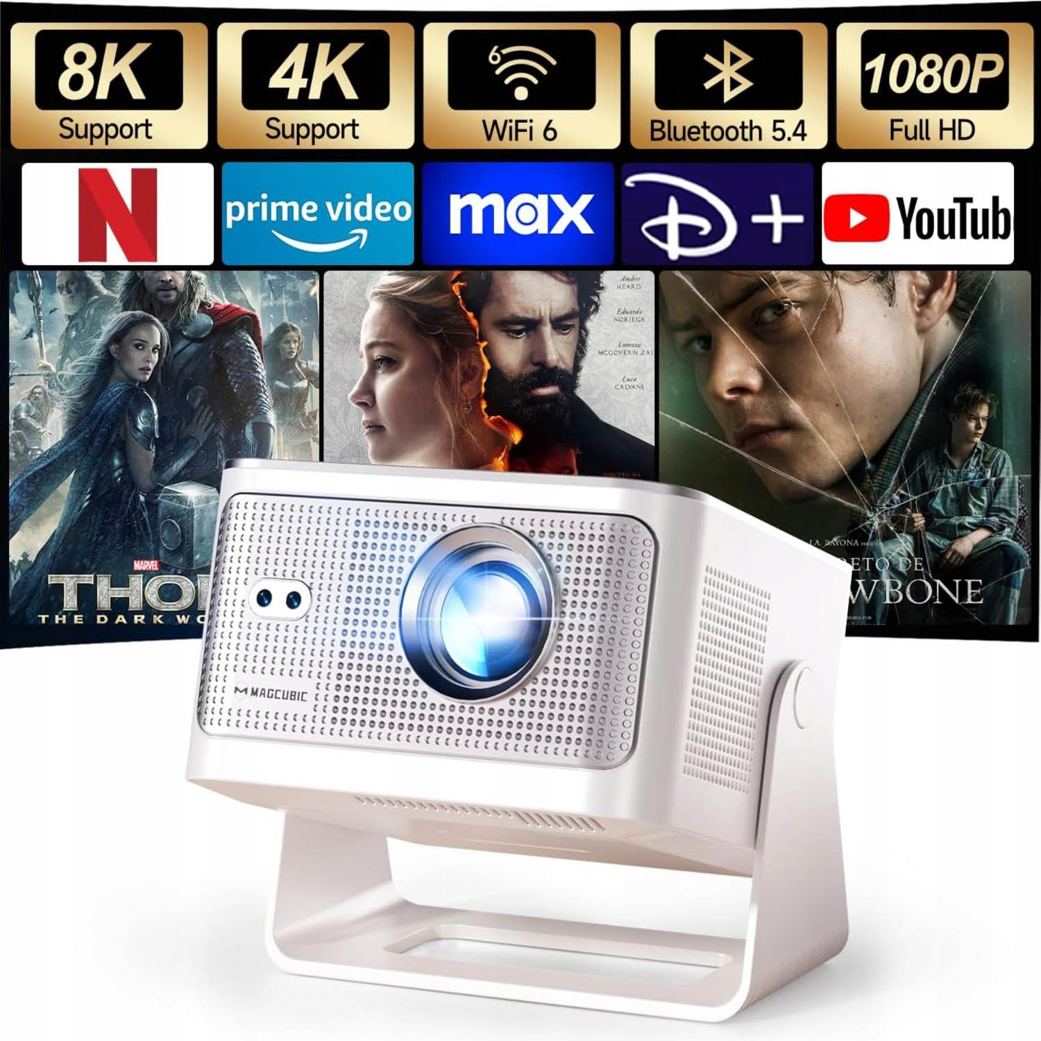 ✅ Da, projektor ima Bluetooth 5.4, što omogućava povezivanje bežičnih zvučnika ili slušalica.
