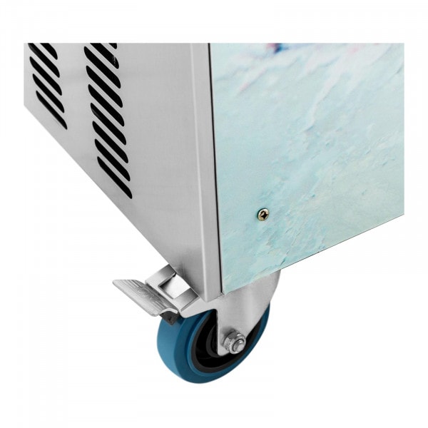 Często zmieniasz lokalizację, żeby sprzedać jak najwięcej lodów? Nie ma problemu. Innowacyjną maszynę do lodów tajskich bez wysiłku przemieścisz dzięki lekkobieżnym kołom. Hamulce utrzymują urządzenie w jednym miejscu.