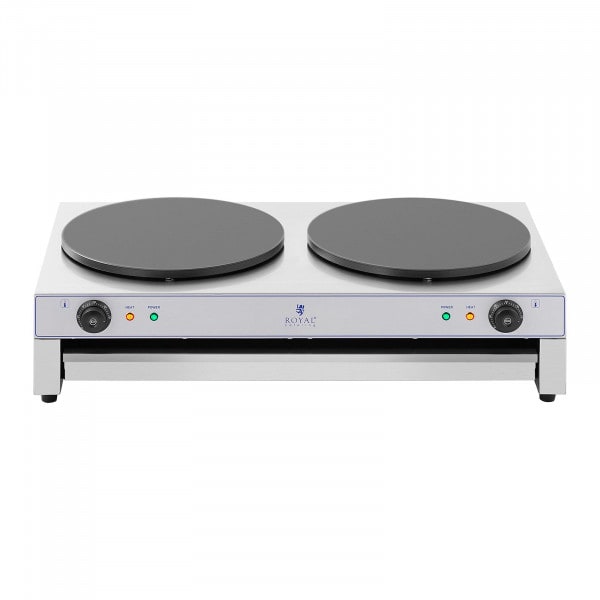 Wydajne urządzenie do naleśników o mocy 2 x 3,000 W nagrzewa się w bardzo krótkim czasie. Ciasto można następnie równomiernie umieścić na płytach grzewczych wykonanych z żeliwa. Każda z nich ma średnicę 400 mm, dzięki czemu zapewnia dużą swobodę – czy to dla dużego, czy małego zapotrzebowania. W zestawie znajdują się dwie szpatułki do ciasta. Pod płytą umieszczono wysuwany schowek ze stali nierdzewnej. Można tu przechowywać przybory kuchenne lub gotowe naleśniki, aby zaoszczędzić miejsce.